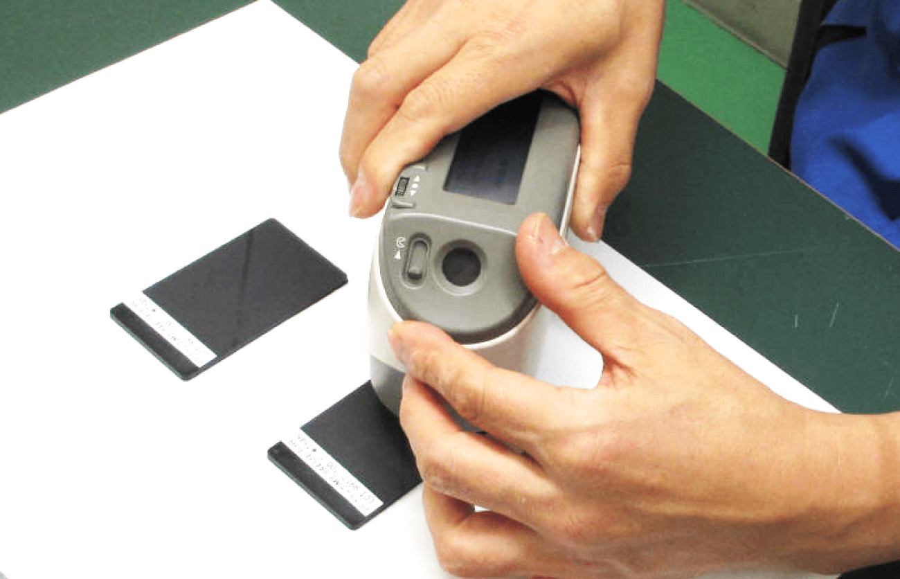 また、「CM-26dG」は、⿊⾊の測定精度が従来機に⽐べて向上しており、ピアノブラックのように⾃動⾞内装材などに多い⿊⾊の⾼品質な⾊管理にも活用できています。