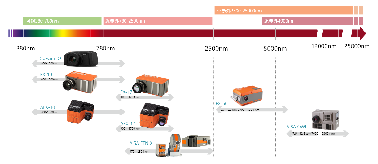 可視域から遠赤外域に渡る広範な測定波長範囲、かつハンディ・インライン・リモートセンシングといった使用シーン別の製品ラインナップを保有しています。
