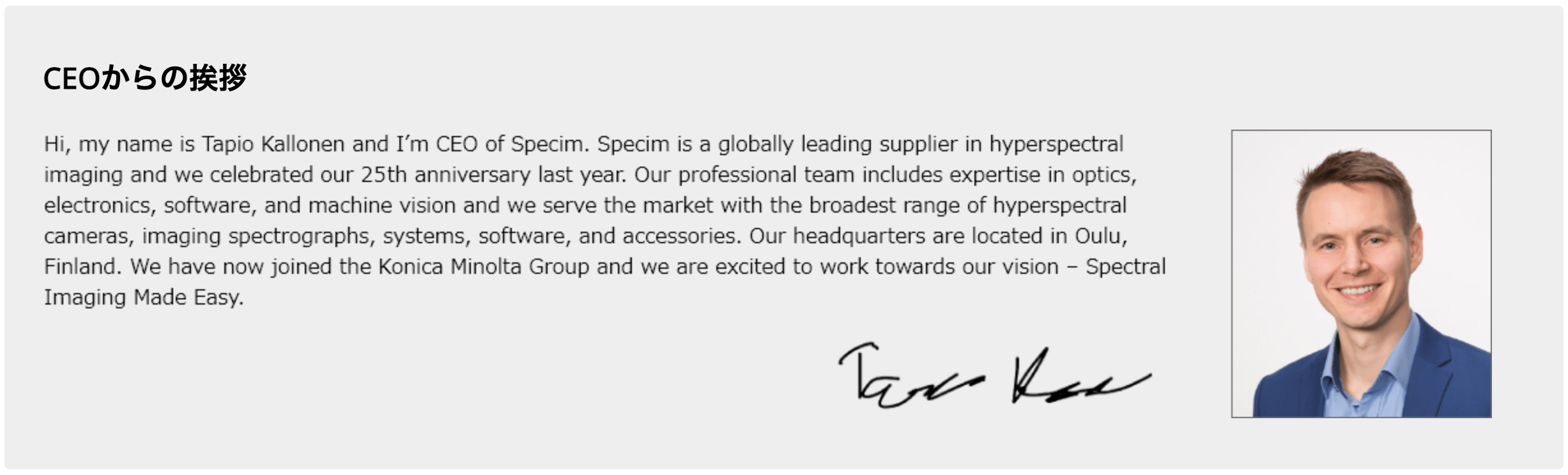 | 社名 | Specim, Spectral Imaging Oy Ltd.(スぺキム) |
