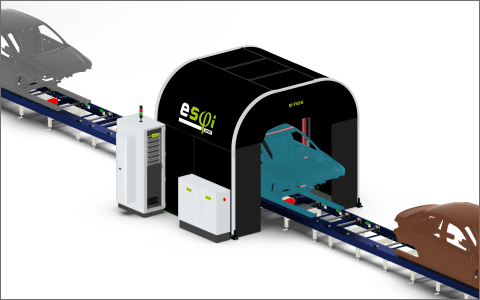 塗装欠陥検査システム「esφi(エスフィ)」は、短いサイクルタイムで生産ライン上の車をスキャン可能な世界初のシステムです。