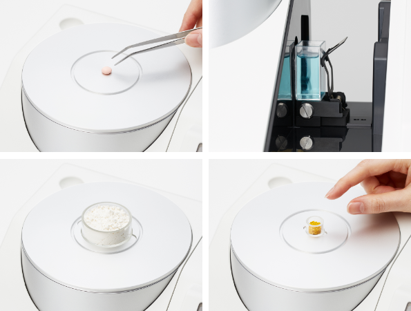 分光測色計CM-5を使用すれば、錠剤、液体、ペースト、粉体といったあらゆる形状の測定サンプルの測定が1台で完結できます。