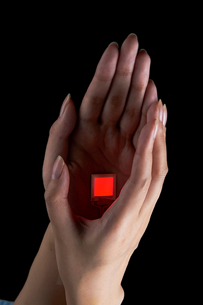 有機EL照明ならではの特長である面光源かつ均一な発光がその紅色をより鮮やかに表現します。