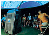 プラネタリウムをもっと身近に、という想いから、1台で星空投映とマルチメディア投映の両方を行うことが出来る「メディアグローブ」が開発されました。投映するドームの直径は3~6m、投映機器自体もキャスター付きで移動可能なので、学校やアミューズメント施設などにも設置が可能となり、用途が限りなく広がります。