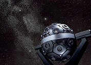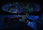 2009年には「スーパーメディアグローブⅡ」が開発されました。「メディアグローブ」シリ ーズでのコンセプトを受け継ぎ、さらなる高解像度と高コントラストによる投映画像の高画質化と、操作性向上を含めた高機能化を実現。今までのデジタルプラネタリウムでは表現しきれなかった漆黒の宇宙空間などコントラスト の高いシャープな映像を、つなぎ目無く再現することが可能になりました。
