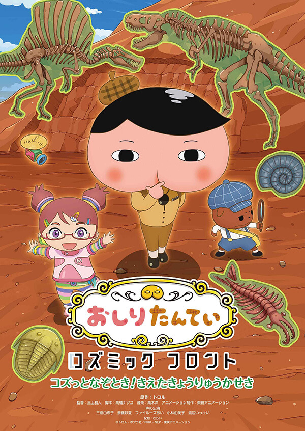 こんな困ったときに頼りになるのは名探偵おしりたんていしかいない!ミックはおしりたんていに調査を依頼することにした。助手のブラウンを連れてやってきたおしりたんていがミックといっしょにクイズや迷路で謎解きに挑戦します。おしりたんていが消えた恐竜化石の謎をププッと解決!