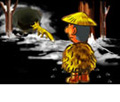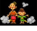 先回りして男を追い越した母子は、人間の母子に。母子が挨拶すれば男も頭を下げて挨拶を返す。男が頭を下げれば背中の篭の中から弁当が転がり落る・・・母子はそれを拾って一目散とい計画だったが。