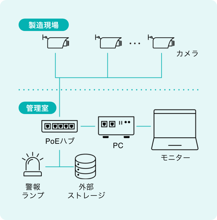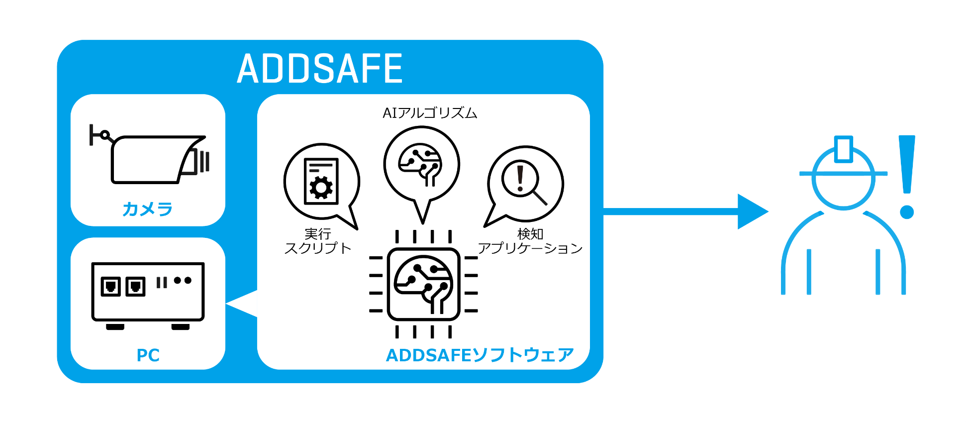 AIアルゴリズムや検知アプリケーションなどのソフトウェア、カメラおよびPCなど、